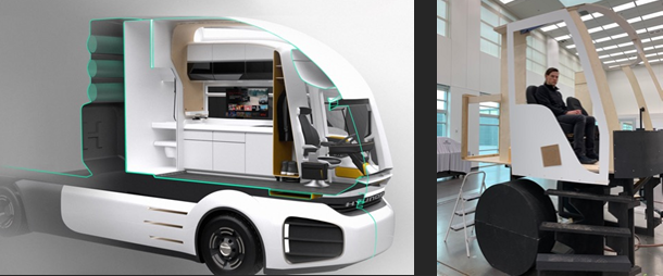 Research included driver interviews, benchmarking and visits to RV retailers to understand compact living space usage. Physical Mockups and Seating Bucks were used to refine the layout and set the package.